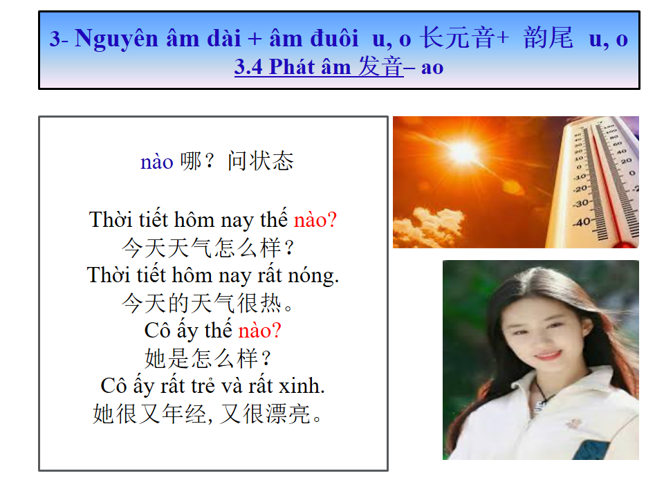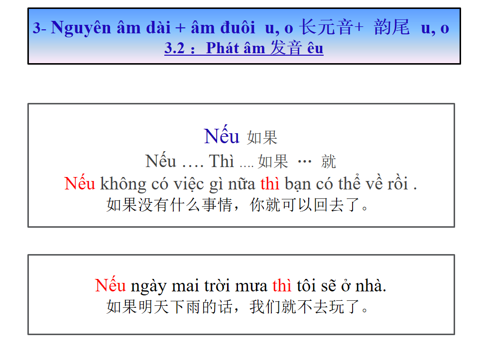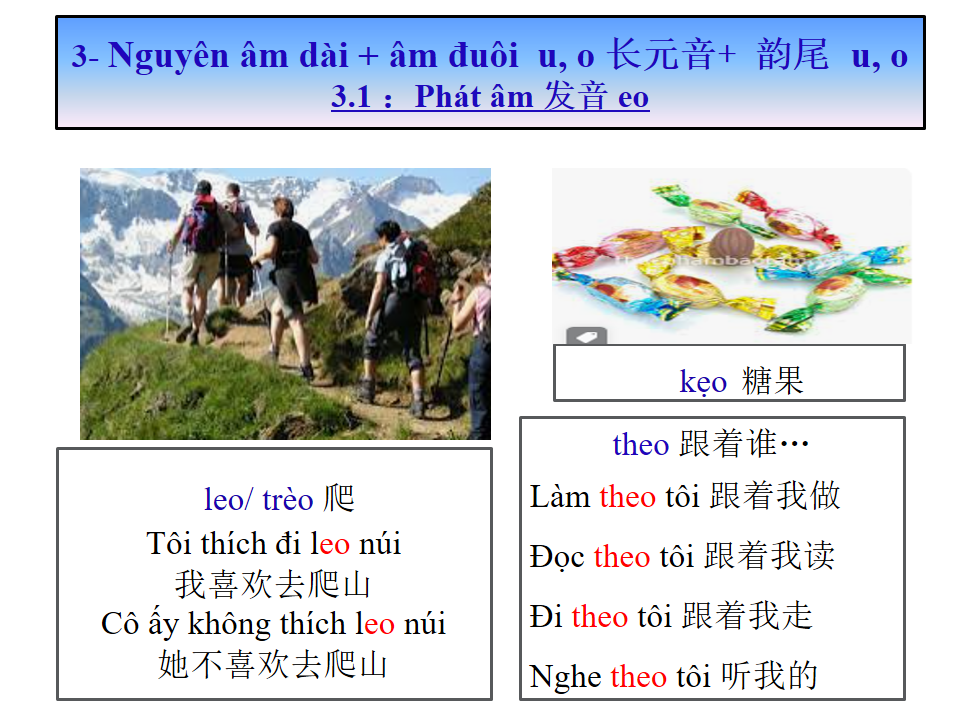 长元音+ 韵尾 u, o Nguyên âm dài + âm đuôi u, o giáo trình Tiếng Việt sơ cấp 1 第九课 Bài số 9 : 元音+韵尾 u, o Nguyên âm + đuôi u,o 长元音+ 韵尾 u, o Nguyên âm dài + âm đuôi u, o Please enable JavaScriptplay-sharp-fill Previous Topic Back to Lesson Next Topic