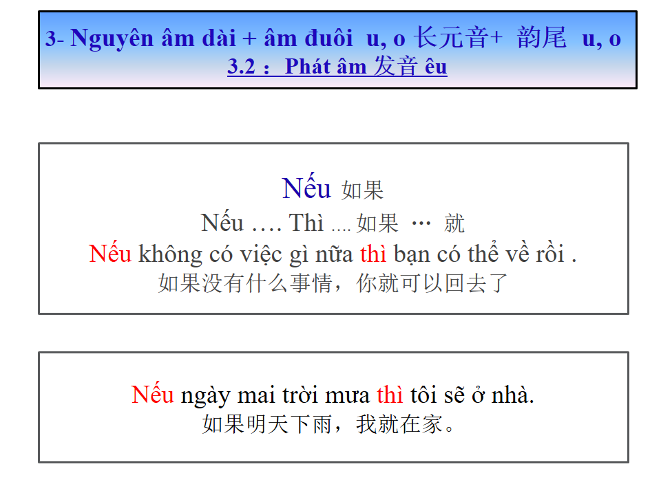 giáo trình Tiếng Việt sơ cấp 1 第九课 Bài số 9 : 元音+韵尾 u, o Nguyên âm + đuôi u,o 长元音+ 韵尾 u, o Nguyên âm dài + âm đuôi u, o