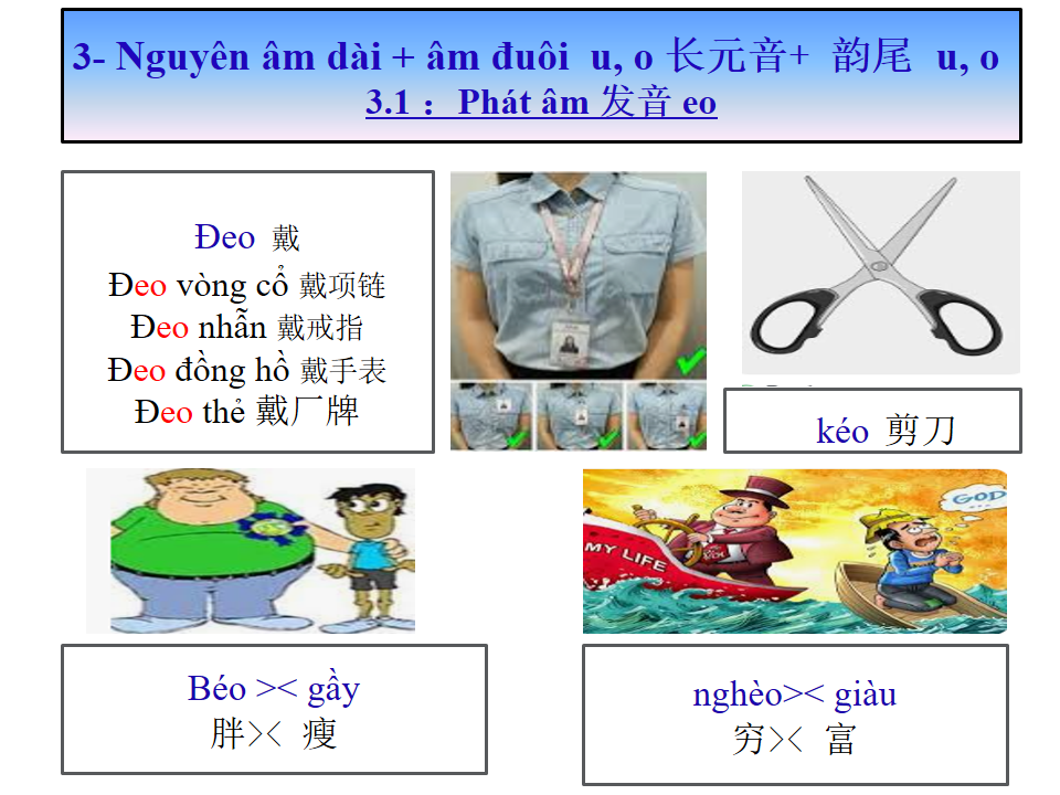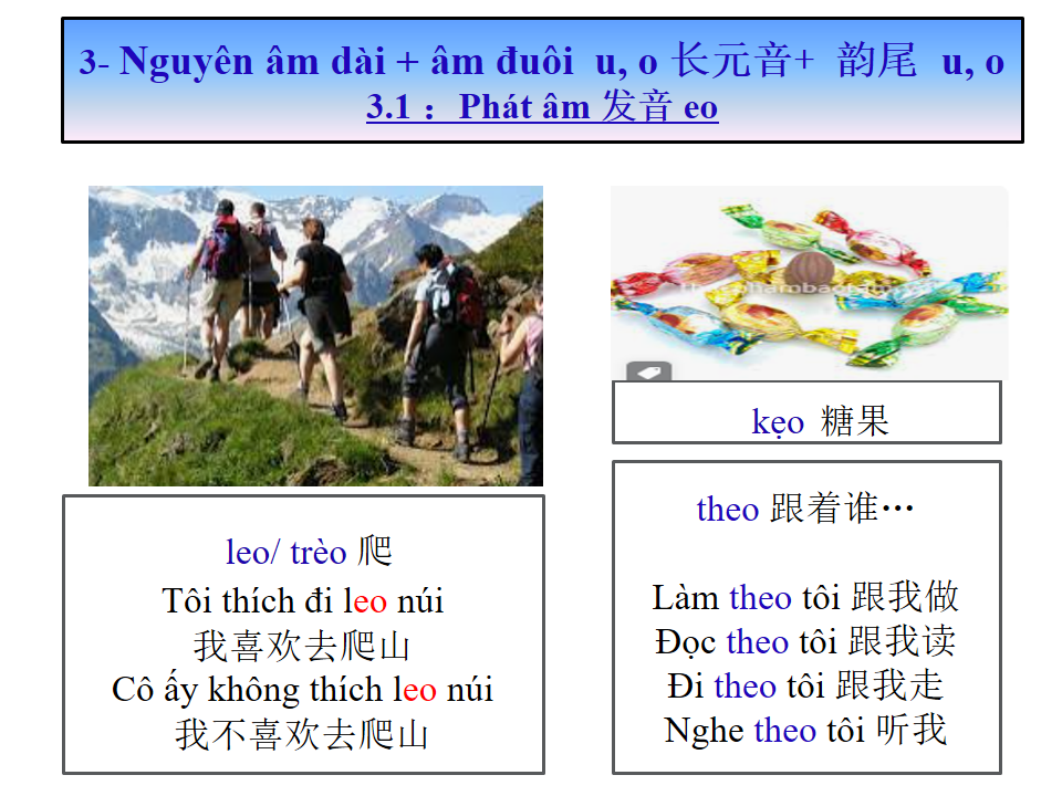 长元音+ 韵尾 u, o Nguyên âm dài + âm đuôi u, o