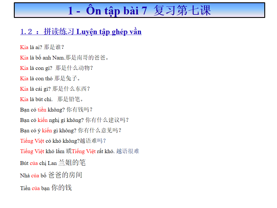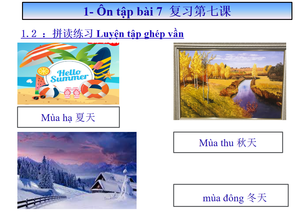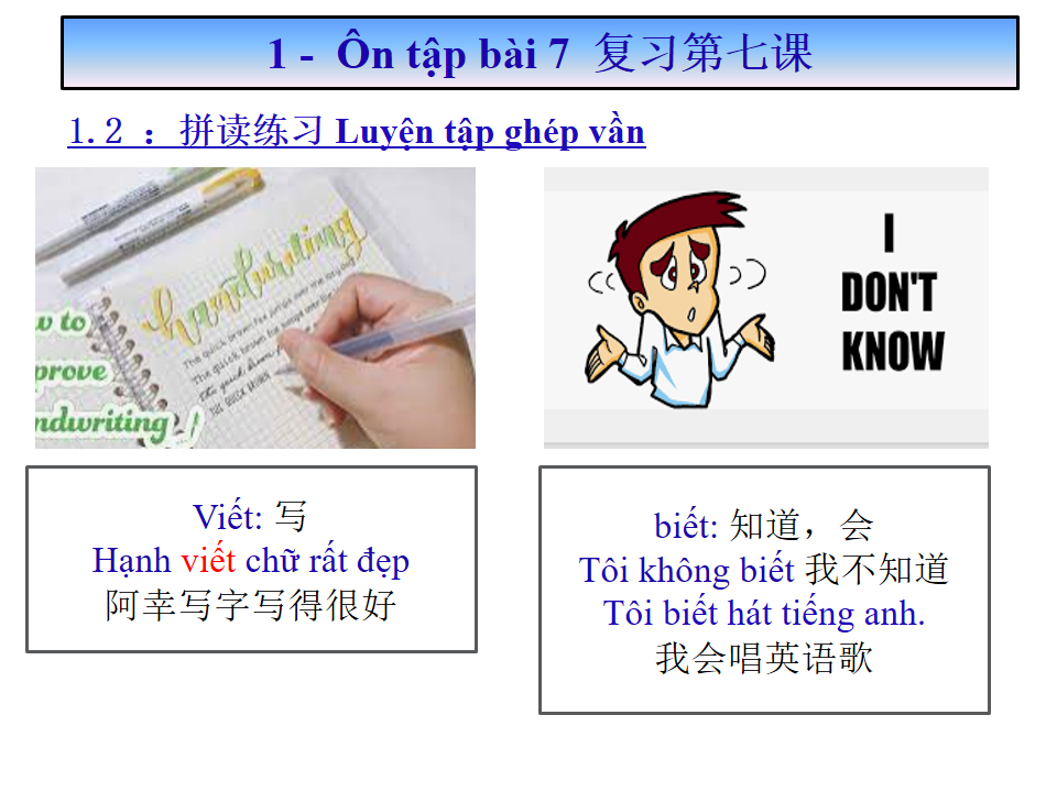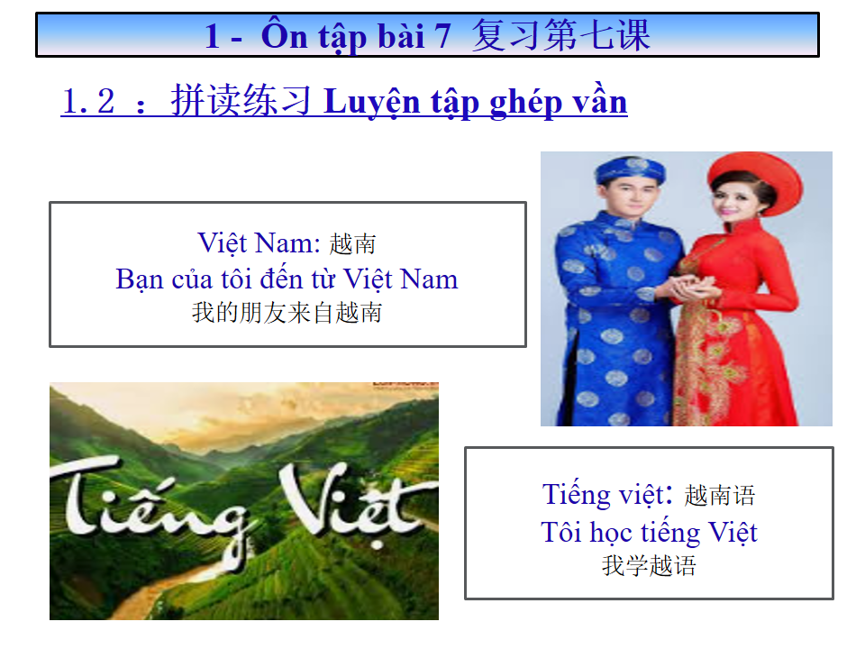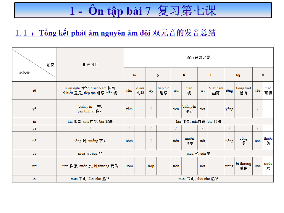 复习第七课 Ôn tập bài 7 giáo trình Tiếng Việt sơ cấp 1 第八课 Bài số 8 : 元音+ 韵尾 i , y Nguyên âm+ nguyên âm đuôi i , y 复习第七课 Ôn tập bài 7 Please enable JavaScriptplay-sharp-fill Previous Lesson Back to Lesson Next Topic