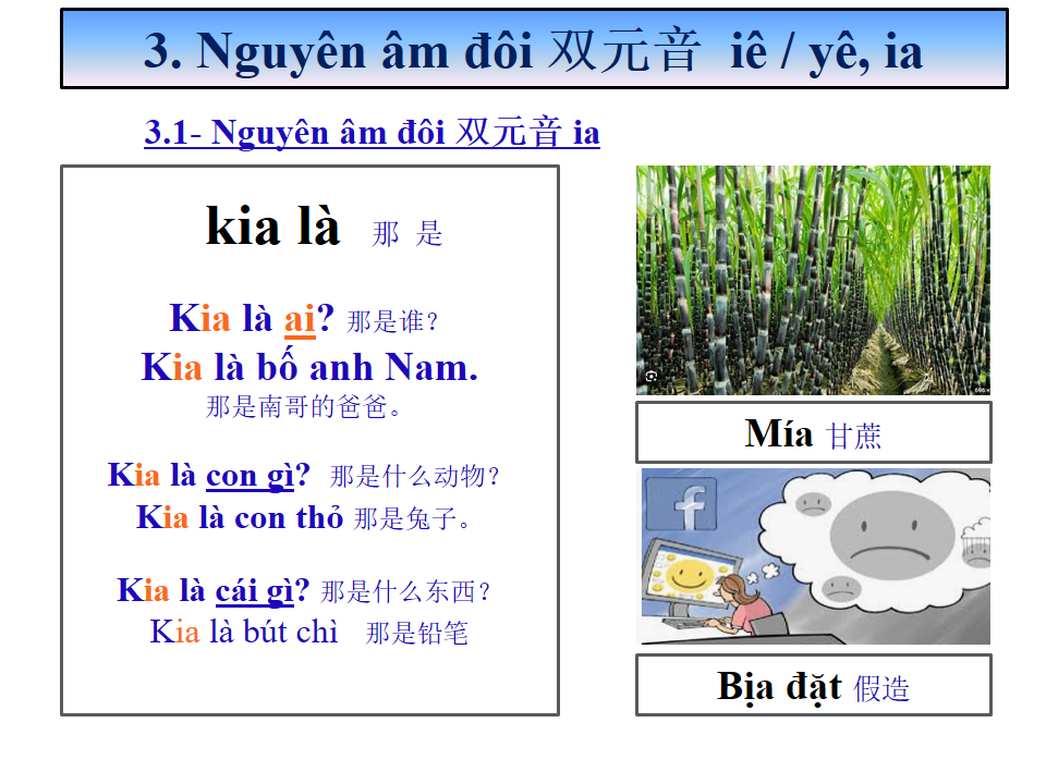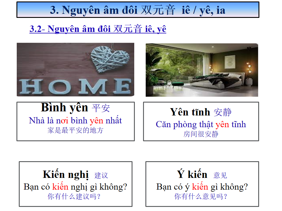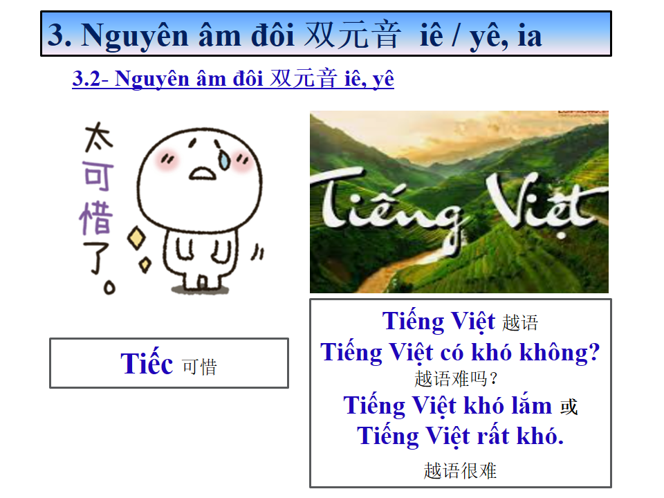 双元音 Nguyên âm đôi iê / yê, ia giáo trình Tiếng Việt sơ cấp 1 第七课 Bài số 7 双元音 Nguyên âm đôi 双元音 Nguyên âm đôi iê / yê, ia Please enable JavaScriptplay-sharp-fill Previous Topic Back to Lesson Next Topic
