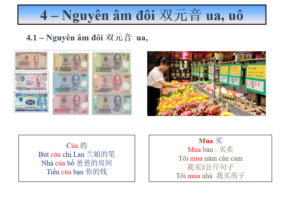 giáo trình Tiếng Việt sơ cấp 1 第七课 Bài số 7 双元音 Nguyên âm đôi 双元音Nguyên âm đôi ua, uô