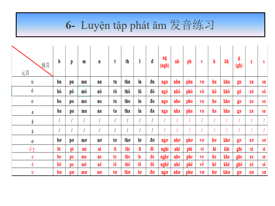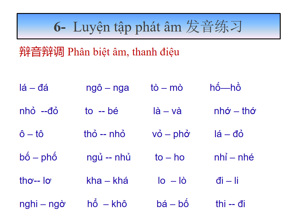 发音练习 Luyện tập phát âm