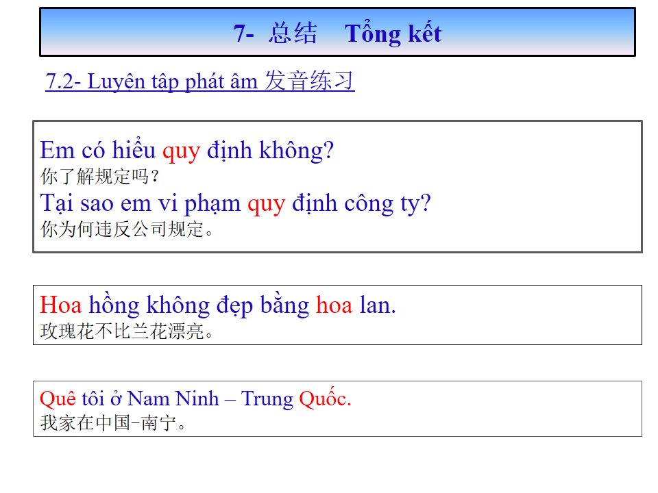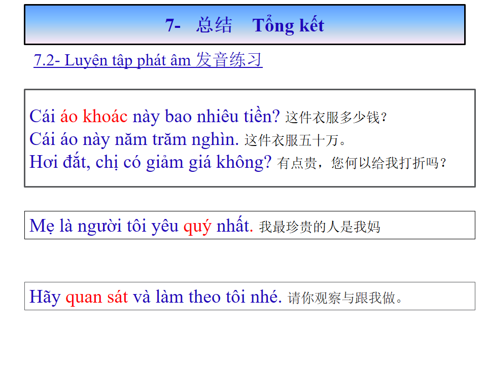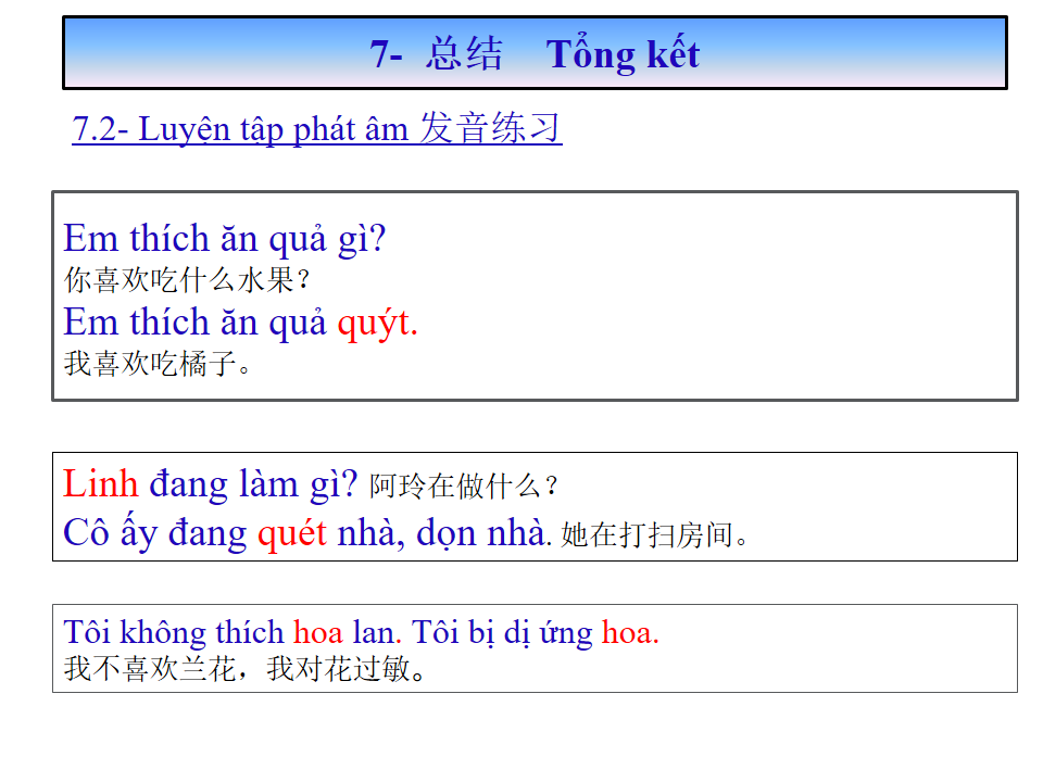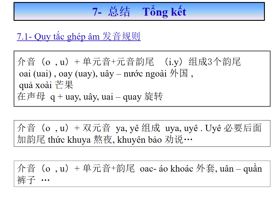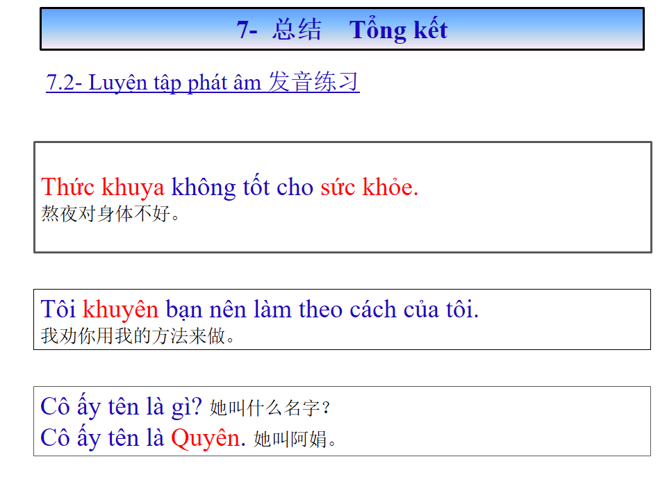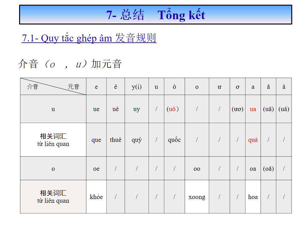 giáo trình Tiếng Việt sơ cấp 1 第 十课 Bài số 10 : 介音 u, o Âm đệm u, o 总结 Tổng kết