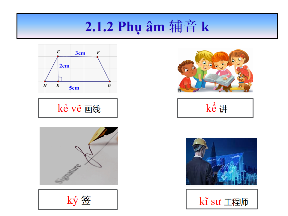 giáo trình Tiếng Việt sơ cấp 1 第三课- Bài số 3 辅音 及声调 Phụ âm, thanh điệu 辅音发音Phát âm phụ âm :k, q, c, ch, tr, d, gi, r